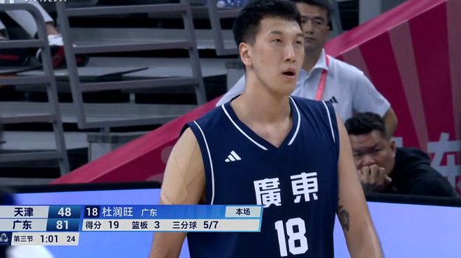 杜润旺的三分成功收获杜锋信任,接下来阿旺继续留在场上单节打满,比分落后20+,天津开始搏命三分,郑昊燃时德帅连中2记三分,关键时刻杜润旺左翼三分再中还以颜色,这一节广东队三分完全投开,杜润旺成为这一节的场上最靓的仔,单节贡献5记三分轰下17分,是这一节广东队外线最靠谱的点。